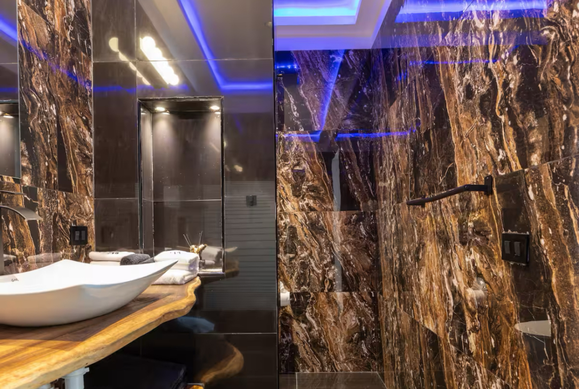 - 3 double bedrooms, each with private en-suite bathrooms and breathtaking ocean views, designed with high-end materials and contemporary style.