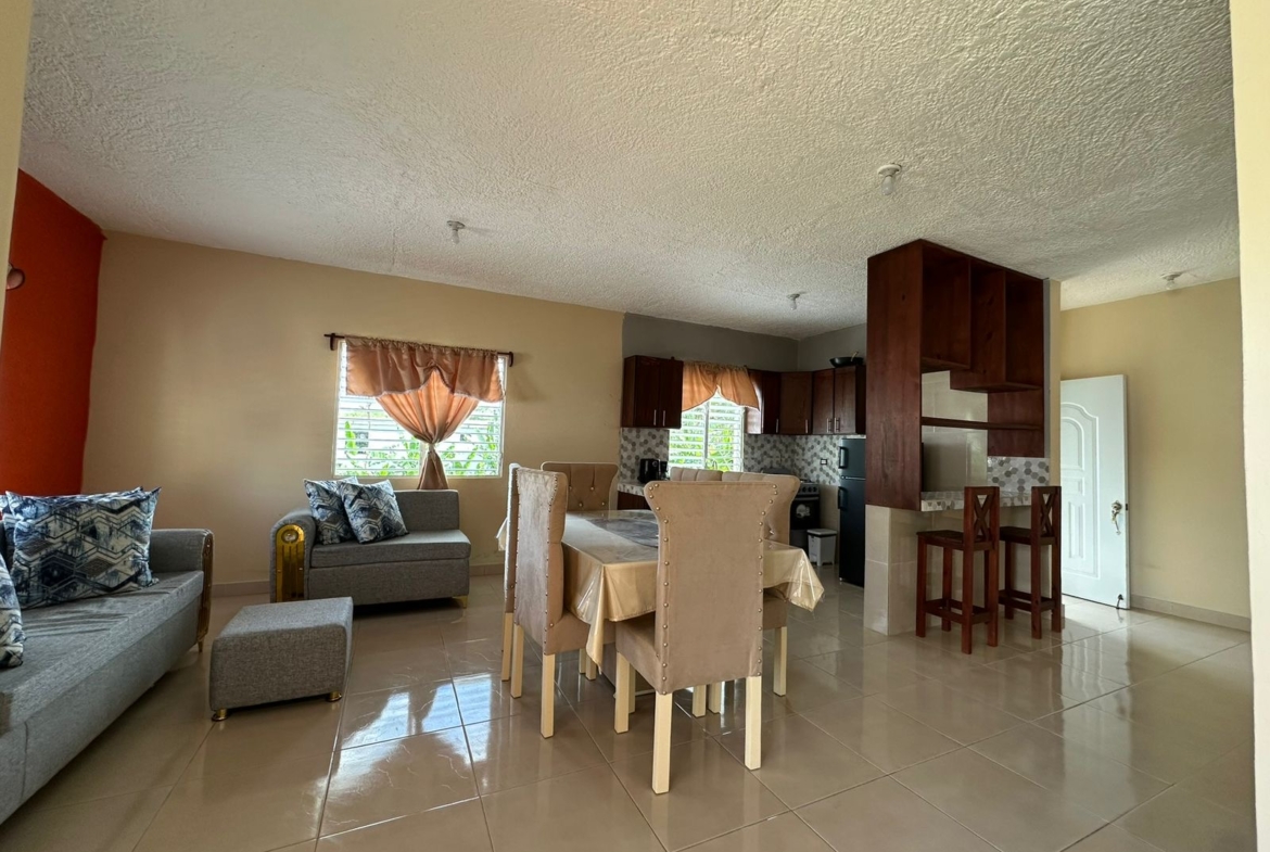 The property features two spacious and bright bedrooms, a comfortable living–dining area, a fully equipped open-plan kitchen, and a private terrace, perfect for relaxing and enjoying the Caribbean climate.